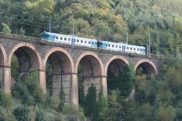 Ein Aln 668 überquert das Viadukt bei Cava de Terreni auf der Strecke Napoli - Salerno; 11.11.2007