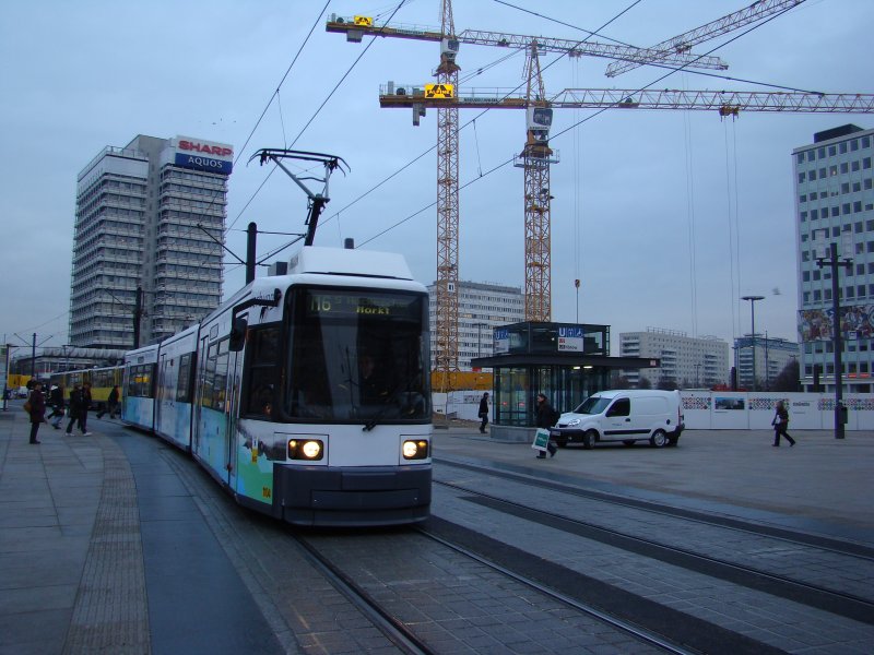 Eine Straßenbahn am Berliner Alexanderplatz. Aufgenommen am 29.11.2007