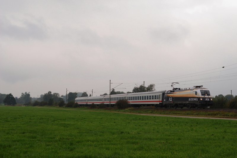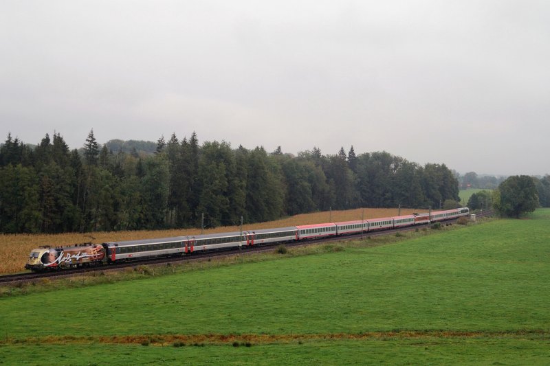 101 016 (Unicef) mit IC 2201 bei Hattenhofen (26.09.2007)