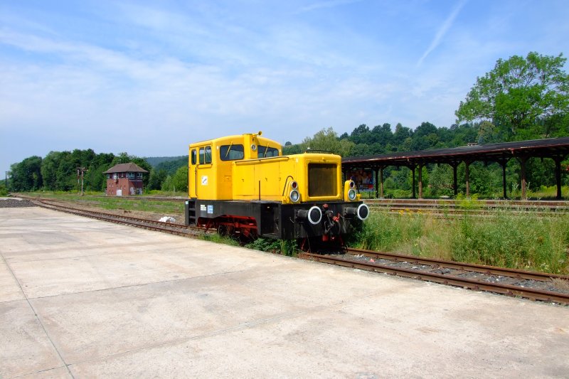 Während die RB 39159 als RB91 "RUHR-SIEG-BAHN" nach Siegen in Plettenberg einfährt, rangiert die 294 731 der MEG einige Güterwaggons zusammen.