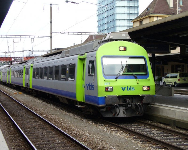 bls - Ausfahrender Pendelzug aus dem Bahnhof von Neuchatel am 09.09.2007