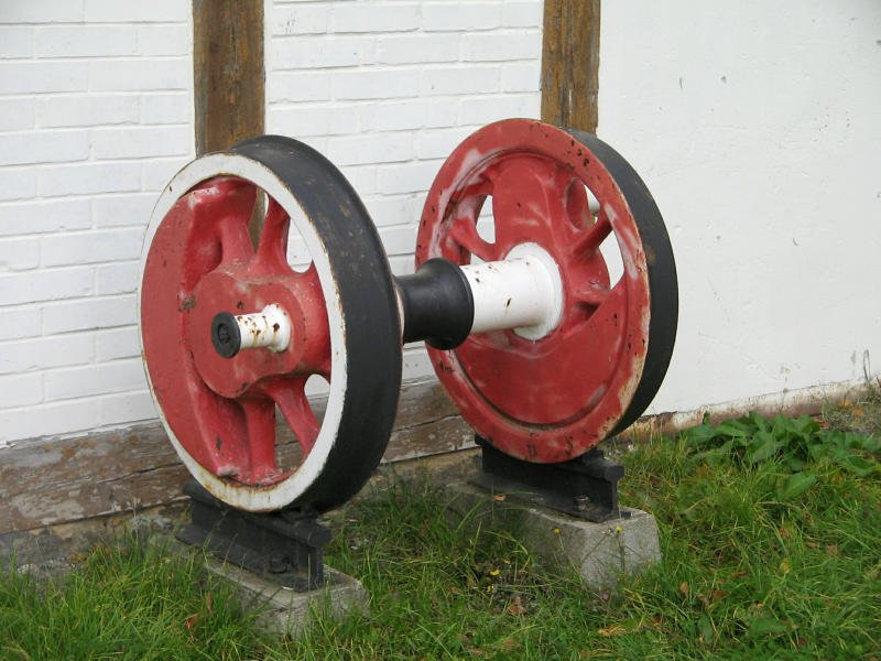 Der Radsatz einer Schmalspurlok, evtl 99 1792?? steht vorm Lokschuppen Geyer, 03.10.07