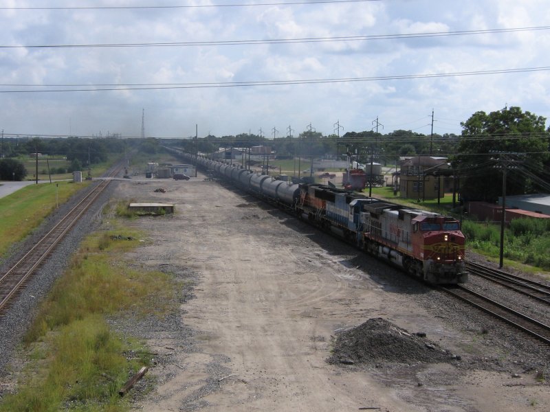 Die Loks 2323 (Union Pacific) und 1512 (ebenfalls Union Pacific, trägt aber noch die Southern Pacific Lackierung) vor einem gemischten Güterzug am 27.5.2007 in Amarillo (Texas).