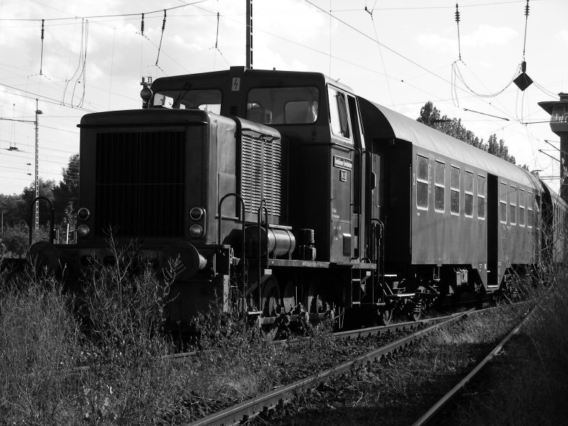 Hinter dem ehemaligem Bahnpostwagen ein Schnellzugwagen eventuell sogar ein ehemaliger Gesellschaftswagen. Aufgenommen am 30.08.07.