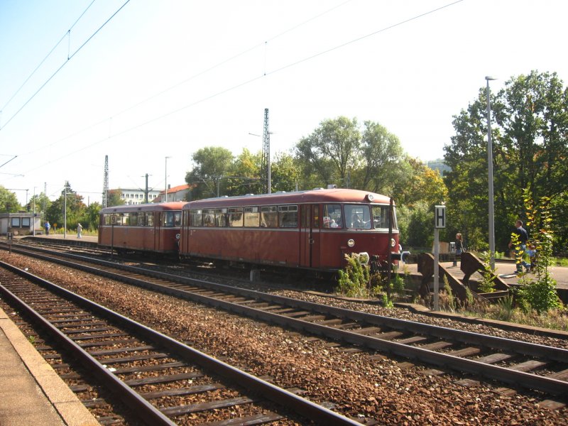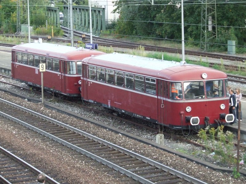 798 528 und Steuerwagen 998 *** fuhren beim Modellbahntreff (16.9.07) in Göppingen als Pendelzug zwischen Bahnhof und Lenohard Weiß Gelände.