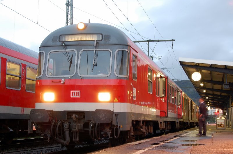 Ein ziemlich sauberer Karlsruher Steuerwagen einer RegionalBahn-Garnitur im Pendel zwischen Aalen und Donauwörth, hier am Abend des 18.09.07 auf Gleis 1 des Aalener Bahnhofs fotografiert.