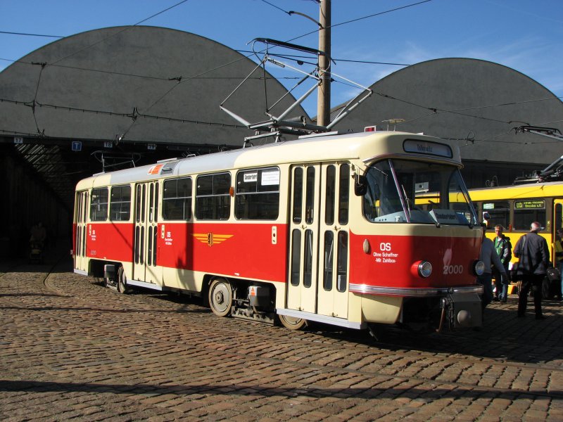 Zur Feier 40 Jahre Tatra in Dresden war der Historische Tw 2000 (T4D)vor dem ehemaligen Straßenbahnhof Tolkewitz zu sehen.16.09.07.