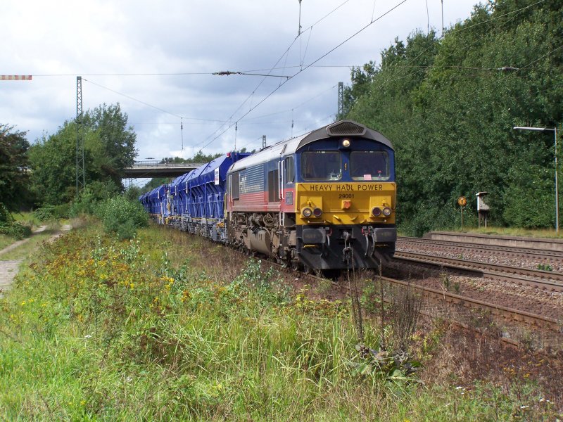 01.09.07, 29001 von Heavy Haul Power steht mit einem Schotterzug in der Überholung in Radbruch.