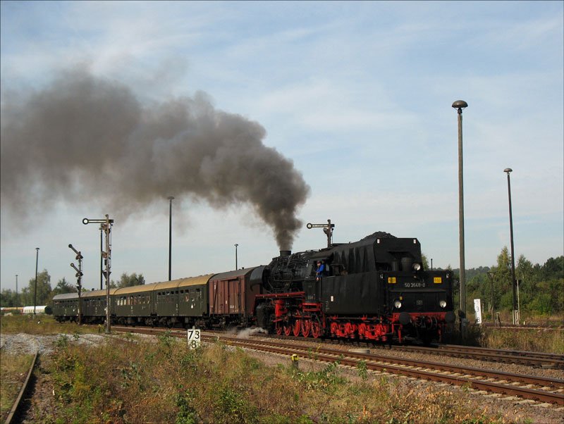 50 3648 mit dem SEM-Sonderzug aus Chemnitz bei Ausfahrt aus Nossen nach Meissen; 22.09.2007