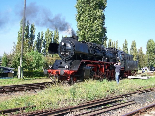 Die BR 50 3708-0 führte Führerstandsmitfahrten beim Dampflokfest in Stassfurt durch. (23.09.07)