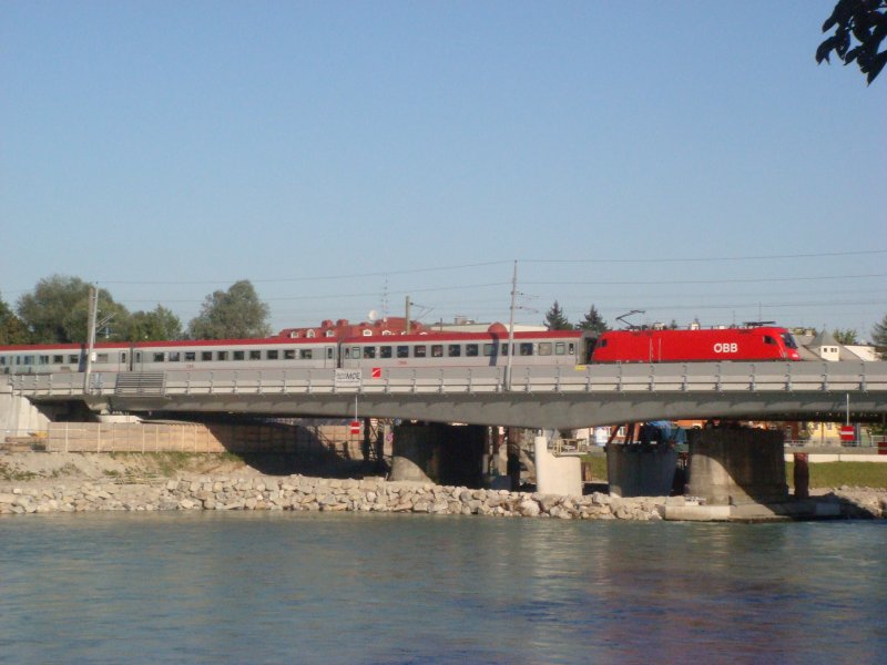 Ein Taurus mit einem EC auf der Salzachbrücke bei Salzburg am 23.09.2007.