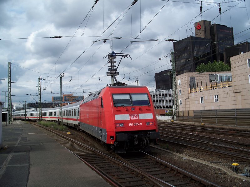120 501 hat soeben mit Unterstütung von 120 151 am Zuganfang mit IC 2266 München - Karlsruhe den Endbahnhof erreicht. 01.09.07