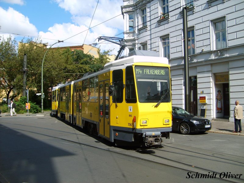 KT4DT 7063 der Berliner Verkehrsbetriebe (BVG) auf der Linie M4 nach Falkenberg