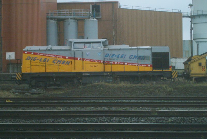 203 005 der "Die-Lei GmbH" im Bahnhof Peine am 10.04.2008