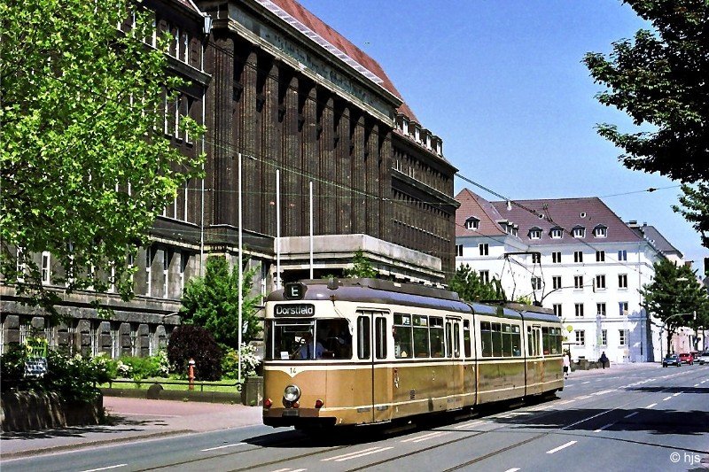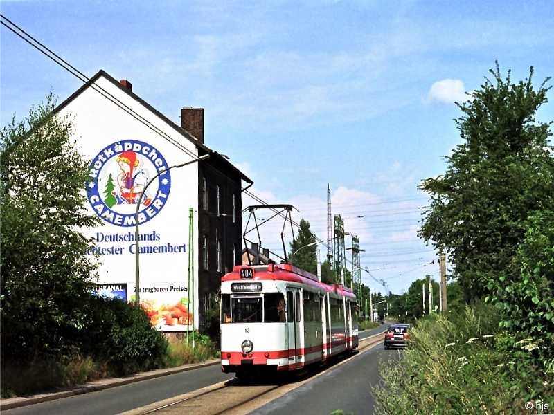 Tw 13 auf dem eingleisigen Abschnitt zwischen Dorstfeld und Marten (29. Juli 1997)