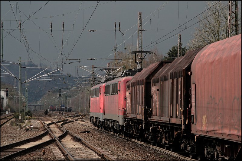 Schöner kann der Sonnenstand und das Motiv ja fast nicht mehr sein. 1116 246 vor 1116 256 am 10.4.2008 bei der Talfahrt der Semmering Nordrampe zwischen dem Bahnhof Eichberg und der Haltestelle Küb aufgenommen.