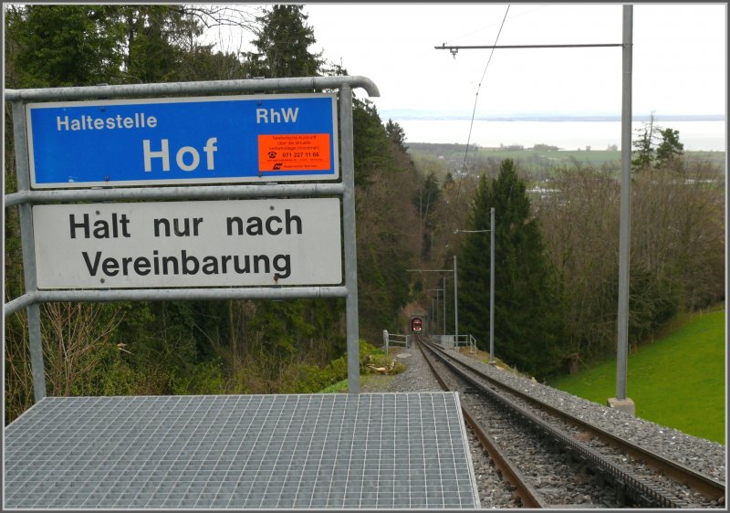 Ohne anzuhalten ist der Triebwagen bei der Haltestelle Hof an mir "vorbeigeklettert". (14.04.2008)