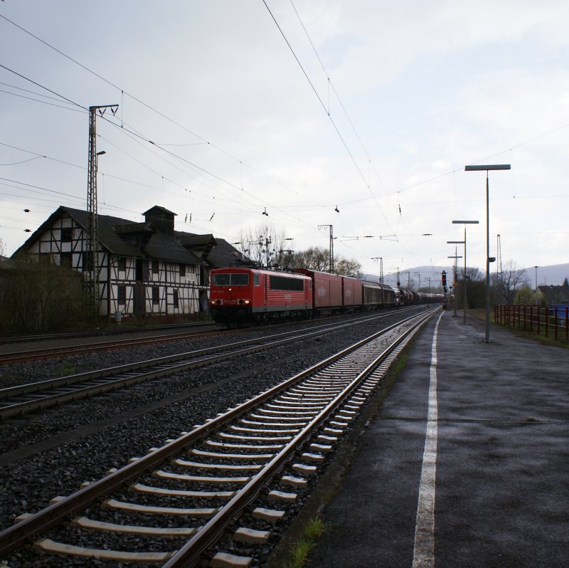 155 023 mit einem gemischten Güterzug durch Kreiensen in Richtung Süden (13.4.2008)