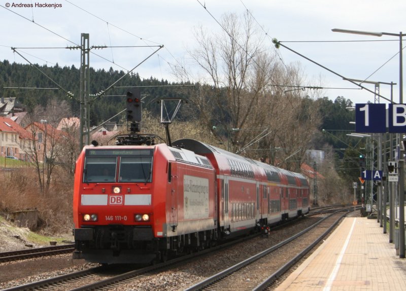 146 111-0 mit dem RE 4709 bei der Einfahrt St.Georgen(Schwarzw) am 20.4.08