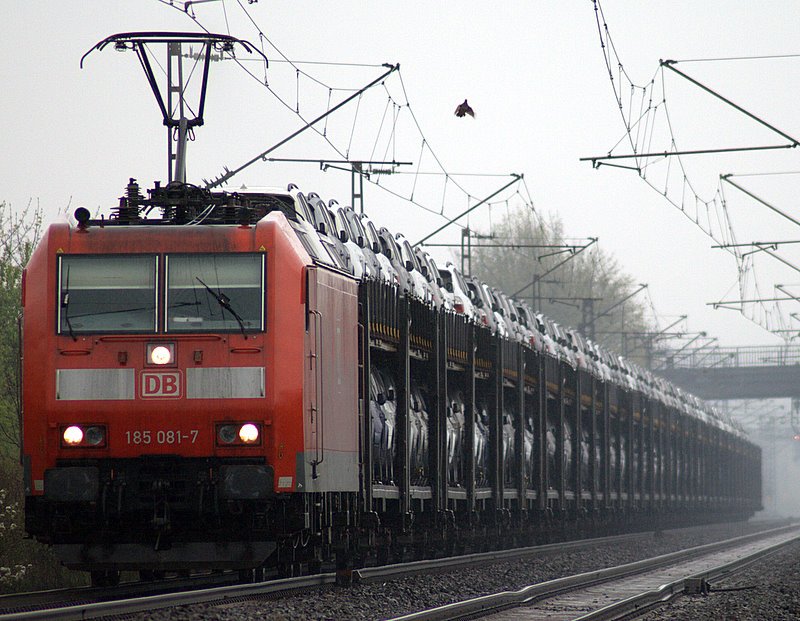 185 009 von DB SCHENKER ist am Nachmittag des 21.04.2008 für die Bespannung des 52296 von Finnentrop nach Hagen eingeteilt und wird bei der Ausfahrt aus Plettenberg auf den Chip gebannt.