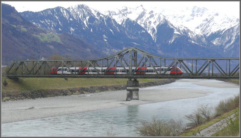 4024er nach Feldkirch auf der Rheinbrücke bei Buchs SG. (09.04.2008)