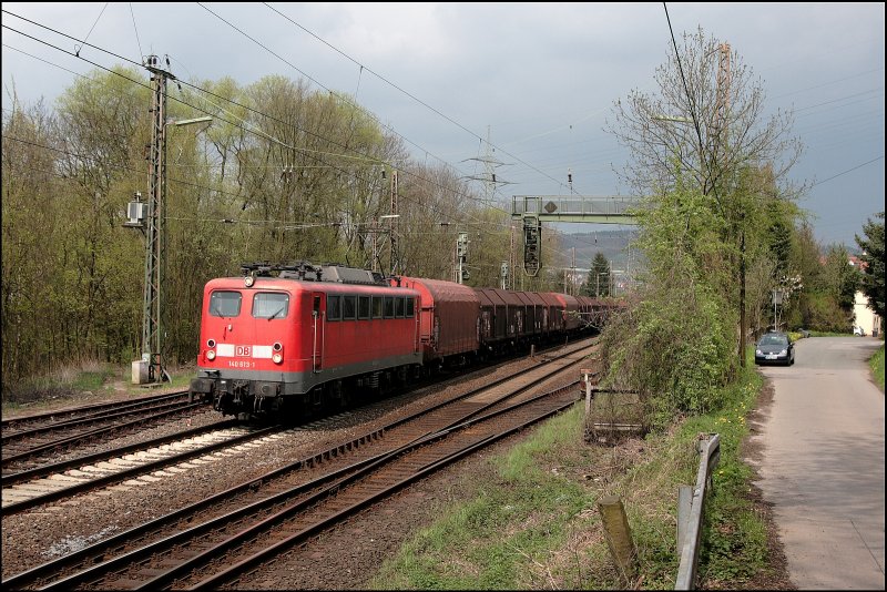 BR 140 825-1 zieht einen GZ mit Kohlenwagen in Richtung Gelsenkirchen.(23.04.2008)