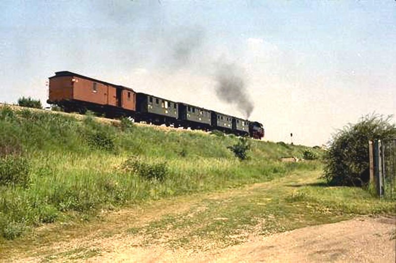 Zug der Traditionsbahn Erfurt-West auf dem Weg zwischen Hbf und Erfurt-Nord, um 1986