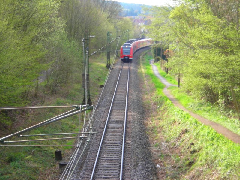 Ein Dauerbrenner in Sachen Verspätung ist der RE 3861 von Mainz über Mannheim nach Karlsruhe. Am 25.04.2008 legt er sich 15 Minuten zu spät in den Bogen der KBS 700 zwischen Neulußheim und Waghäusel.