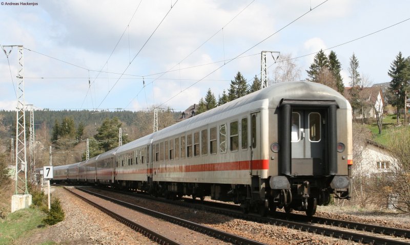 Nachschuss:101 100-6 mit dem IC 2006 (Konstanz-Dortmund) am km 69,1 26.4.08. Früher war der Zug komplett aus einer Inter GEio GAnritur gebildet heute sind nur die 2 letzen Wagen ex Interegio Wagen