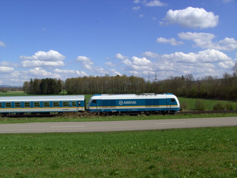 Zwei leider unbekannt gebliebene 650er fuhren am 26.04.2008 als RegionalExpress nach Crailsheim. Hier haben sie gerade den Ort Rainau-Buch durchfahren, nächster Halt des Zuges war Schwabsberg.