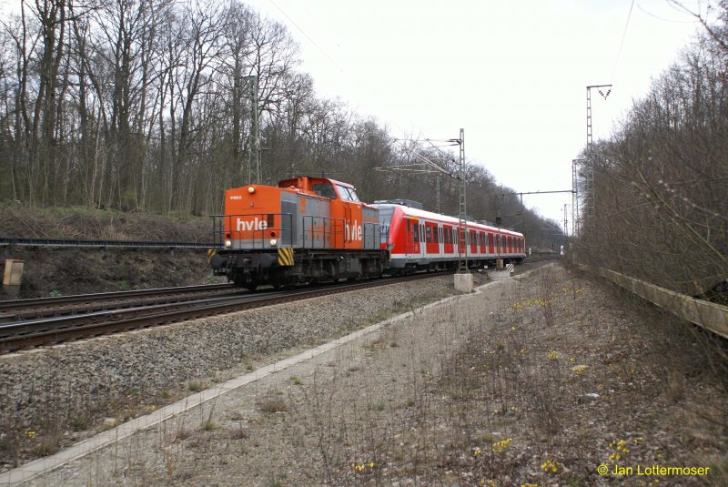 Eine EVB-V160 fährt durch Hamburg-Harburg. 28.03.08