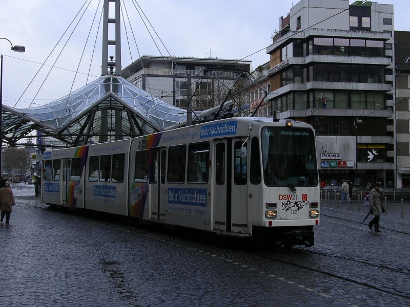 DSW21 ,Doppel-Bahn ,Linie 403 nach Brackel ,am frühen Morgen an der Haltestelle Reinoldikirche.(03.04.2008)