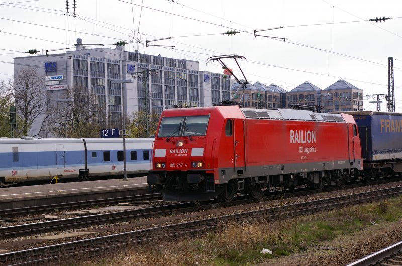 185 283-9 mit dem FZT 55834 am km 69,0 30.4.08.Die Lok muss wohl er kürzlich in der Wäsche gewesen sein so wie sie geleuchtet hat ;-)