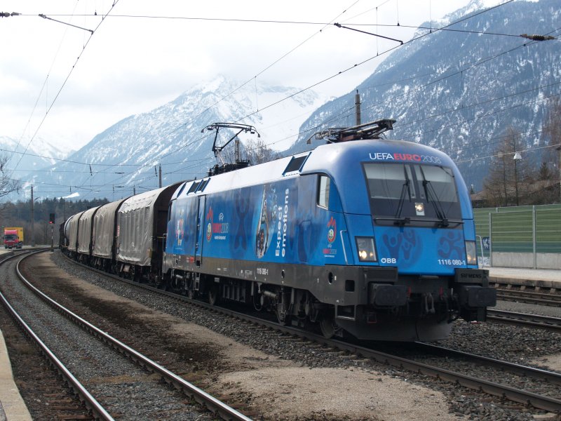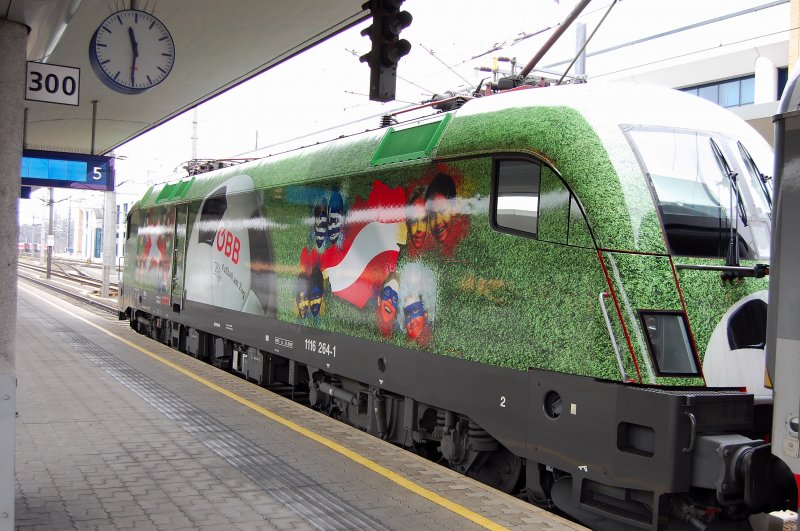 Eigentlich war ich auf der Suche nach dem Schweden-Taurus, der sich laut ÖBB-Webseite in der Gegend herumtreiben sollte, als plötzlich die UEFA-Lok im Bahnhof Wien Meidling auftauchte (5.4.2008).