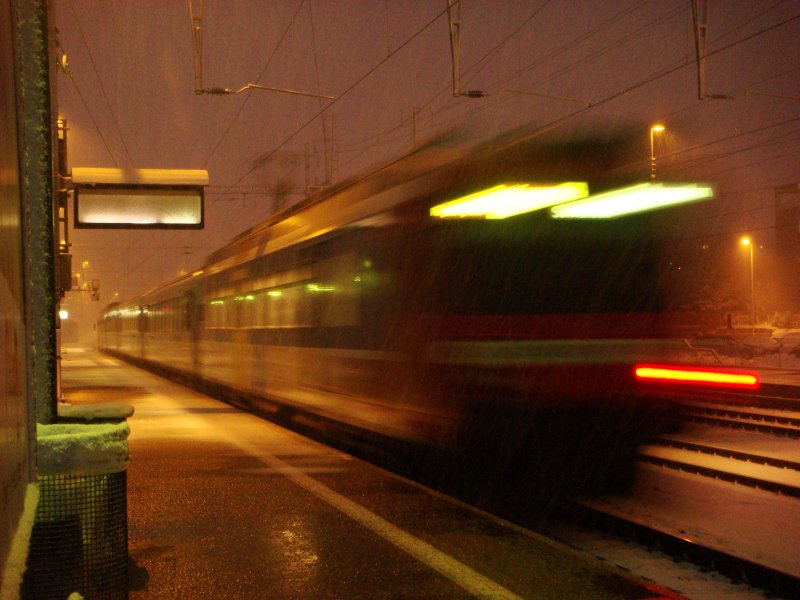 Am 25.03.2008 konnte man in Folge starken Schneefalls kaum mehr die Zugzielanzeige lesen...