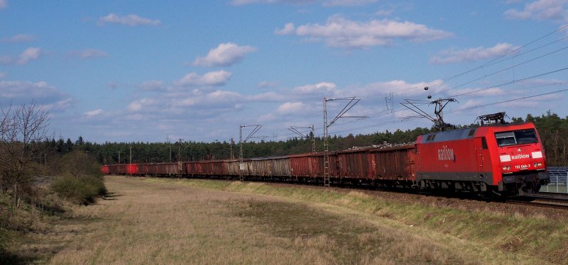 152 155-8 fährt mit einem Güterzug in den Rbf MAschen ein 29.3.08