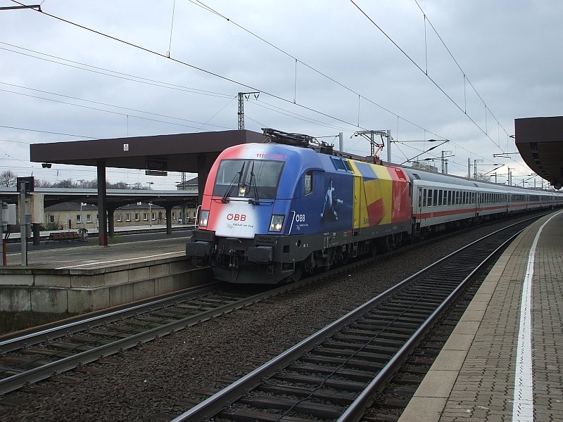 1116 056-1 (EM-Lok Kroatien) am 7.4.2008 mit IC 2082 "Königssee" bei der Einfahrt in Göttingen
