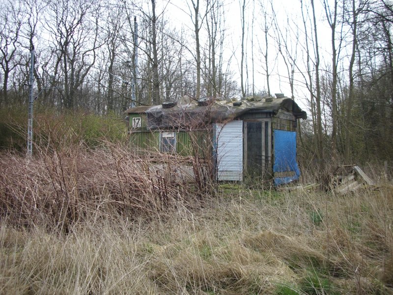 Die Jahrelang nicht mehr genutzte Schrankenbude von Posten 17 bei Bergen am 07.4.2008