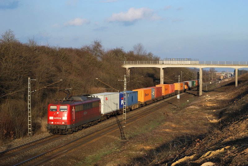 151 063 mit einem Containerzug bei Hattenhofen (19.03.2008)