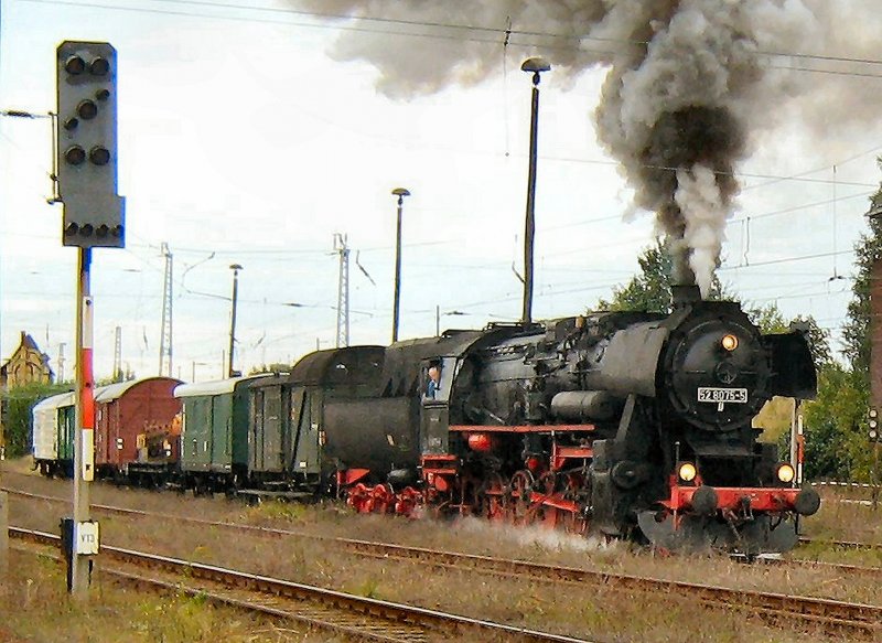 Güterzug mit BR 52 zum Abschluß der Lokparade in Berlin-Schöneweide, Herbst 2007