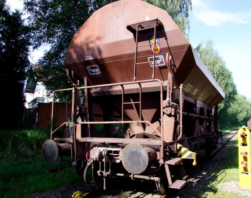 Schotterwagen-40819428115-5 steht einsam und verlassen am Abstellgleis in RIED ;080810