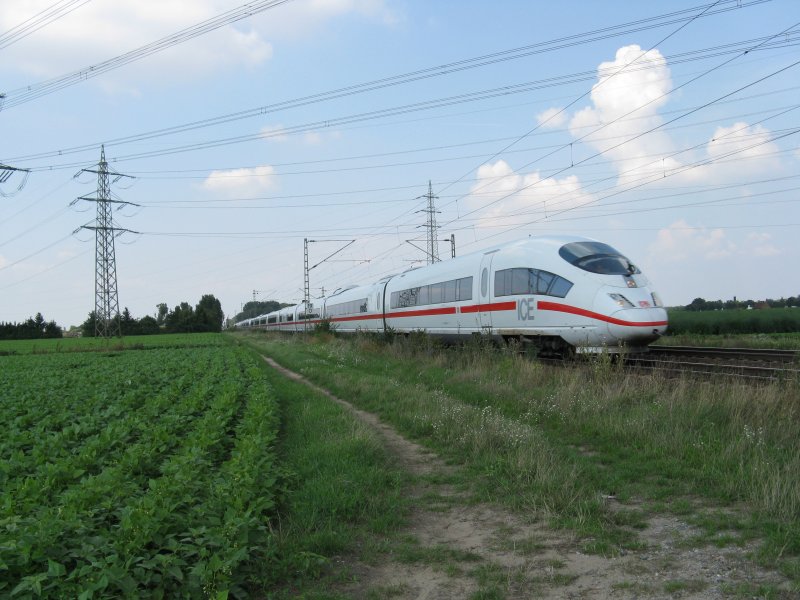 Ein ICE2801 als Ersatzzug von ICE373 von Berlin nach Basel SBB.Am 16.08.08 bei der durchfahrt in Lampertheim.
