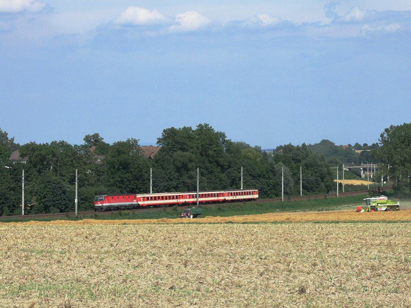 Eine 1044 befördert die Schlierengarnitur des REX 1790 von Linz Hbf nach Schärding, aufgenommen zwischen Kimpling und Neumarkt. [30.07.08]
