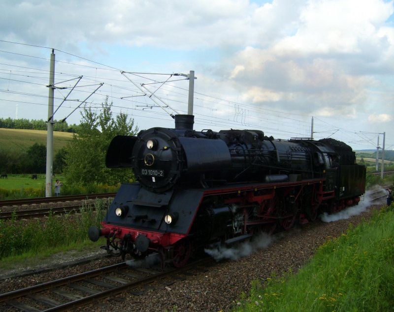 03 1010 war dieses Jahr das letzte mal in Chemnitz Hilbersdorf betriebsfähig zu Gast, ihre Fristen laufen dieses Jahr ab und das DB Museum hat natürlich kein Interesse die Lok betriebsfähig zu erhalten. (SEM 24.08.08)