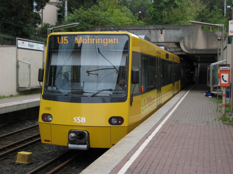 Gleich wird der DT 8.11 3383/3384 als U6 beim Bopser in den Tunnel Richtung Weinsteige einfahren.