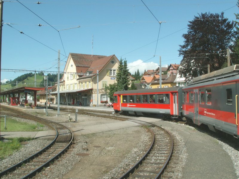 AB,Strecke Altstätten Stadt-Gais.Zugseinfahrt in den Bahnhof Gais.03.08.08