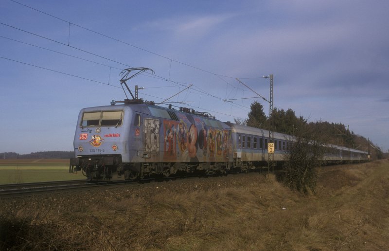 120 142 mit einem abgestellten Interregio im August 2000 im Saarbrücker Hbf.