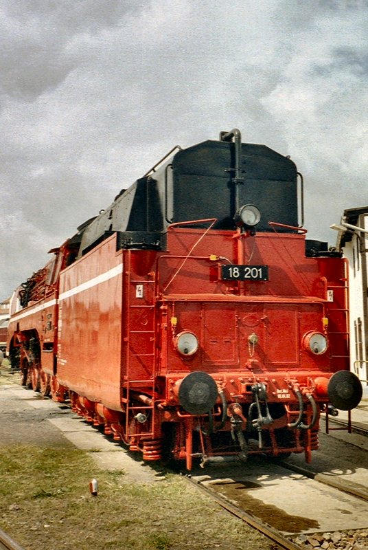 18 201, damals in roter Farbgebung (heute wieder im grünen Anstrich), hier in Weimar