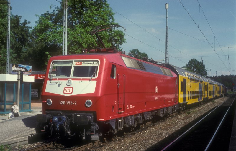 120 153 Kirchseeon 10.6.89 Die 120 151 und 153 fuhren einige Wochen mit NS-Doppelstockwagen auf der S4 in München für Testzwecke.