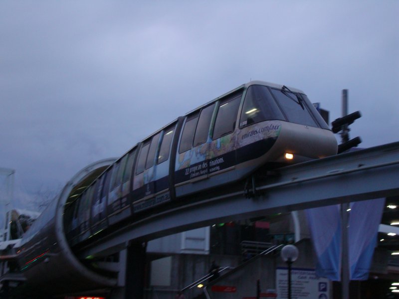 Der Versuch eines Mitziehers der Monorail in Sydney (Nähe Central) mit Werbung für die Emirates am 20.06.2008